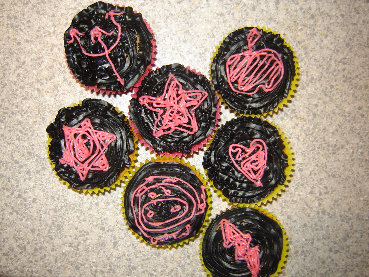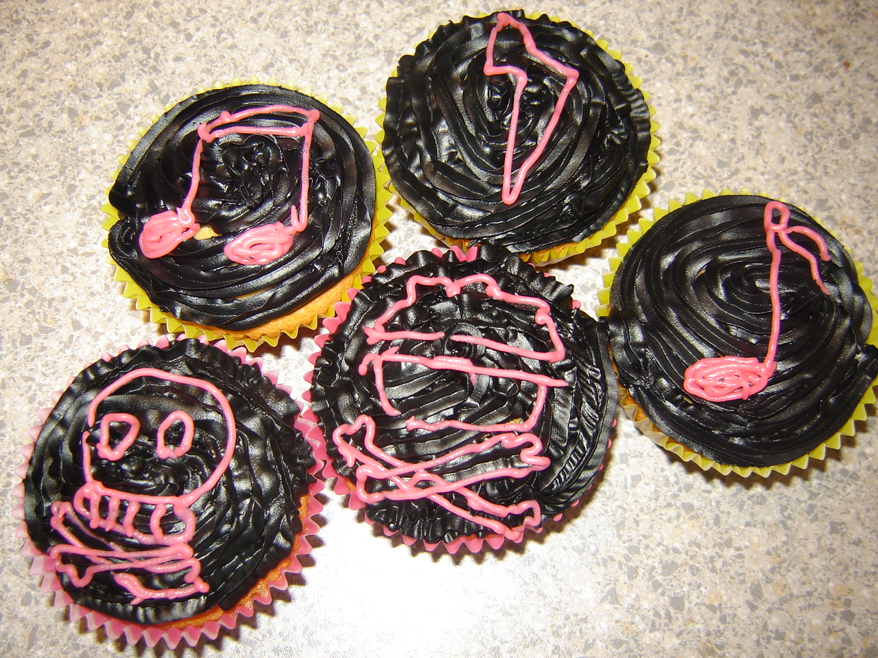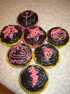 Just having a play around with some left-over icing-in-a-can. Came up with these delicious creations. Used a basic vanilla cupcake recipe and the icing is Wilton’s icing in a can/tube, which I originally found from Milly’s in Ponsonby, but you can probably find it in any baking/cooking shop – I have found it at Total Food Equipment in Napier.