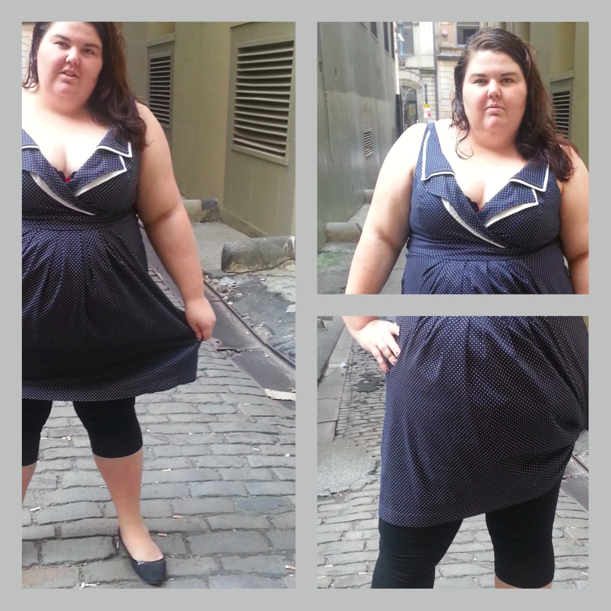This dress, from none other than City Chic, shows the above – baring my arms for all to see the flabby-ness and my boobs. Yes you can see my bra, but I don’t care. At least I’m wearing one.