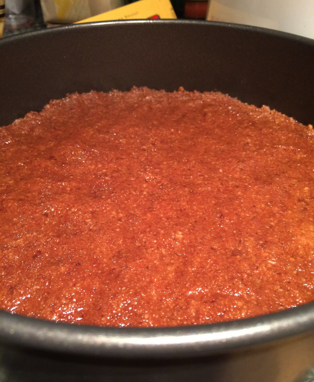 Firstly you will need to make the base. You combine the biscuits with the butter and almond meal in a food processor. I used that entire packed of biscuits, which was probably around 250-300g. I also increased the butter to 100g, as I like my bases to really stick together and not be all crumbly. I found the added almond meal in the base added a bit of somethin-somethin that my usual cheesecake bases don’t usually have. Definitely going to keep this one in my back pocket.