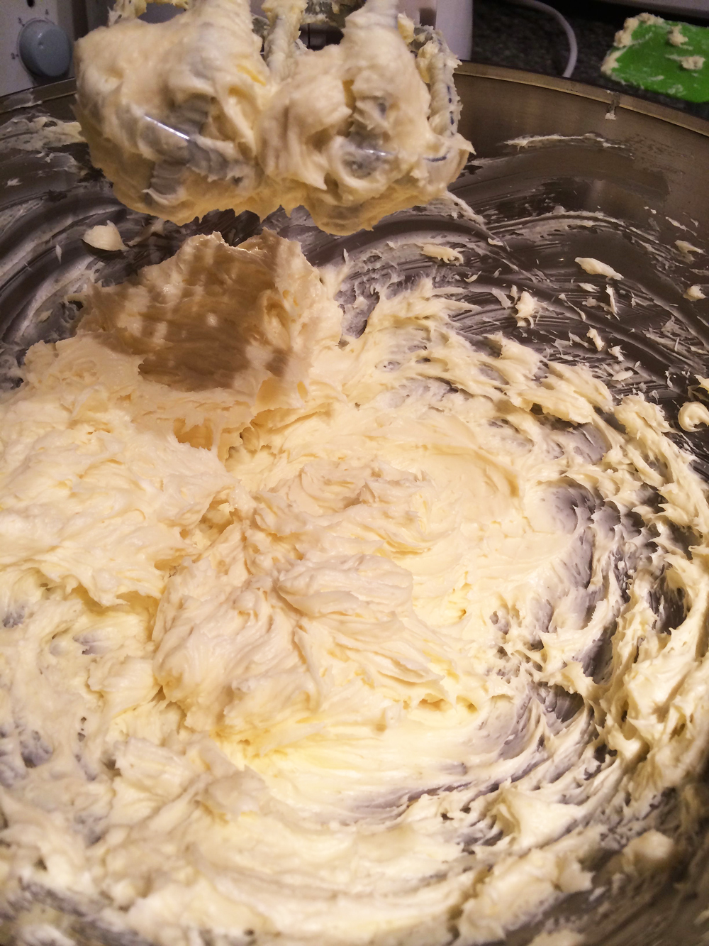 Then beat the cream cheese and sugar together.