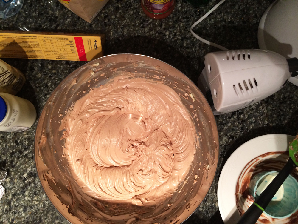Beat in the melted Toblerone and cream.
