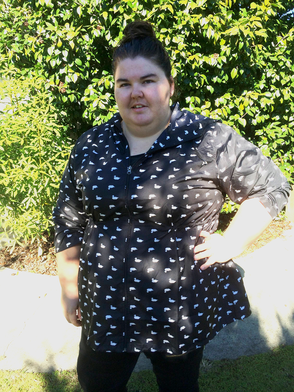 Overall, I am so pleased with this jacket. I wouldn’t recommend wearing it out in a downpour, but it will protect you from light showers. It is definitely a great purchase for me as Wellington’s wind usually renders umbrellas impossible to use. In the last week I have found it great to wear over a pair of leggings and singlet when I’m going out for a walk – it adds a bit of protection from the cold and wind. Plus, the ducks make it so goddamn cute!