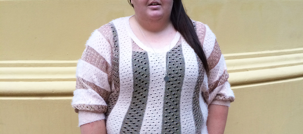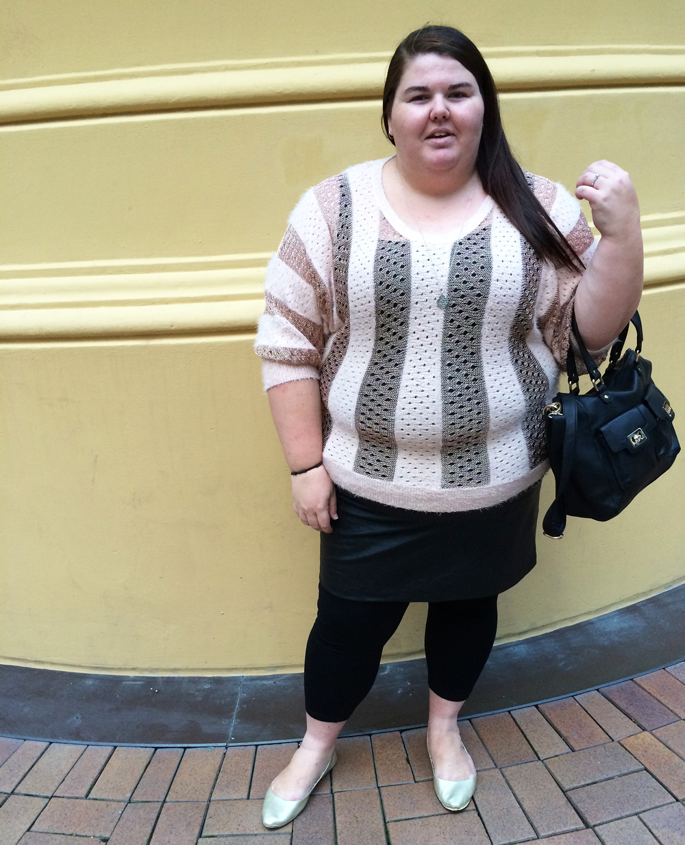 This jumper has two parts to it. The super soft knitted pinkish-peach angora-like bits and the rose gold knitted mesh, essentially. I’m not really sure how to describe it. But it is FABULOUS. Very snuggly and warm, which will do me well this winter.