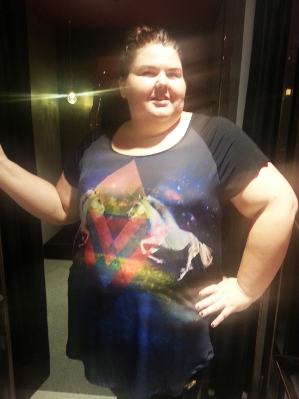 This is the Mirrored Unicorn Top. It is very similar to the Leopard and Tiger tops that I already have, so I knew it was going to fit well and be worn with a lot of my current wardrobe already. When it came to buy it, this was the question that I asked – is it too similar? But then I was like, it’s unicorns, of course I’m bloody buying it. So this is the first addition from my shopping trip. It is a bit longer than my other ones, so aside from pairing it with jeans, I’m also keen to try it with my wet-look leggings.